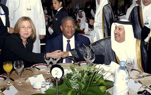 شیخ حمدبن جاسم بن جبر آل ثانی وزیر خارجه قطر و تزیپی لوینی، وزیر خارجه اسراییل (رژیم اشغالگر صهیونیستی)